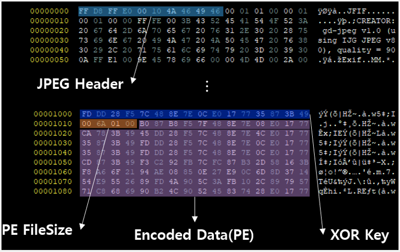 โดยไฟล์ภาพ JPG จะใช้เทคนิค steganography ซึ่งทำให้สามารถซ่อนโค้ดภายในไฟล์ได้ เพื่อทำให้ M2RAT ("lskdjfei.exe") ถูกติดตั้ง และ inject ตัวเองลงใน "explorer.exe" ได้