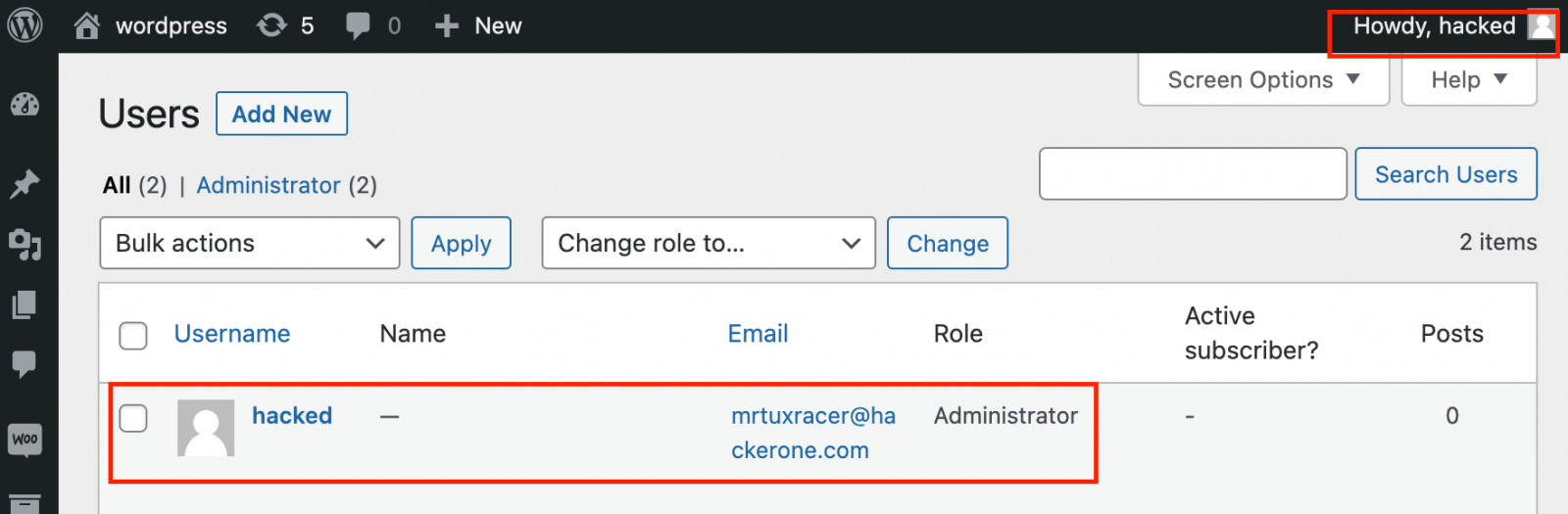 RCE Security ได้เผยแพร่ proof-of-concept ที่ใช้ช่องโหว่นี้เพื่อสร้างบัญชีผู้ดูแลระบบใหม่บนเว็ปไซต์ WordPress ที่มีช่องโหว่ ซึ่งทำให้ผู้โจมตีสามารถเข้าควบคุมเว็บไซต์ได้