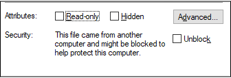 เพื่อตรวจสอบว่าไฟล์ที่ดาวน์โหลดมามี Mark-of-the-Web หรือไม่ คุณสามารถคลิกขวาที่ไฟล์ใน Windows Explorer แล้วเปิดคุณสมบัติ (Properties) ของไฟล์นั้น หากไฟล์นั้นมี MoTW จะเห็นข้อความที่ด้านล่างระบุว่า "This file came from another computer and might be blocked to help protection this computer"
