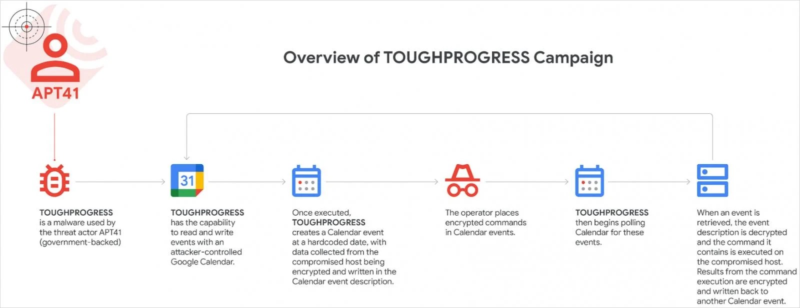 กลุ่มแฮ็กเกอร์ APT41 จากจีน ใช้มัลแวร์ตัวใหม่ชื่อ ‘ToughProgress’ ซึ่งใช้ประโยชน์จาก Google Calendar เพื่อการสั่งการ และควบคุม (C2) โดยซ่อนกิจกรรมอันตรายไว้เบื้องหลังบริการคลาวด์ที่เชื่อถือได้
