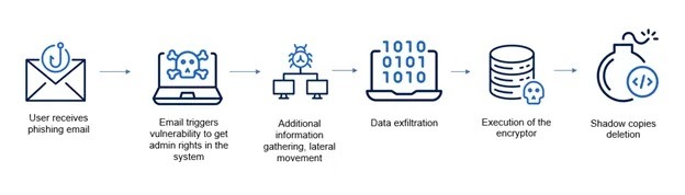 อย่างไรก็ตาม หากการเข้าถึงด้วยข้อมูล Credentials ล้มเหลว กลุ่มนี้จะใช้กลยุทธ์สำรอง ซึ่งเกี่ยวข้องกับการขโมยข้อมูลจากระยะไกล ตามด้วยการเข้ารหัสไฟล์โดยใช้เครื่องมือที่ถูกต้อง และได้รับการอนุญาตในระบบ ซึ่งมักหลีกเลี่ยงการตรวจจับของระบบรักษาความปลอดภัยได้