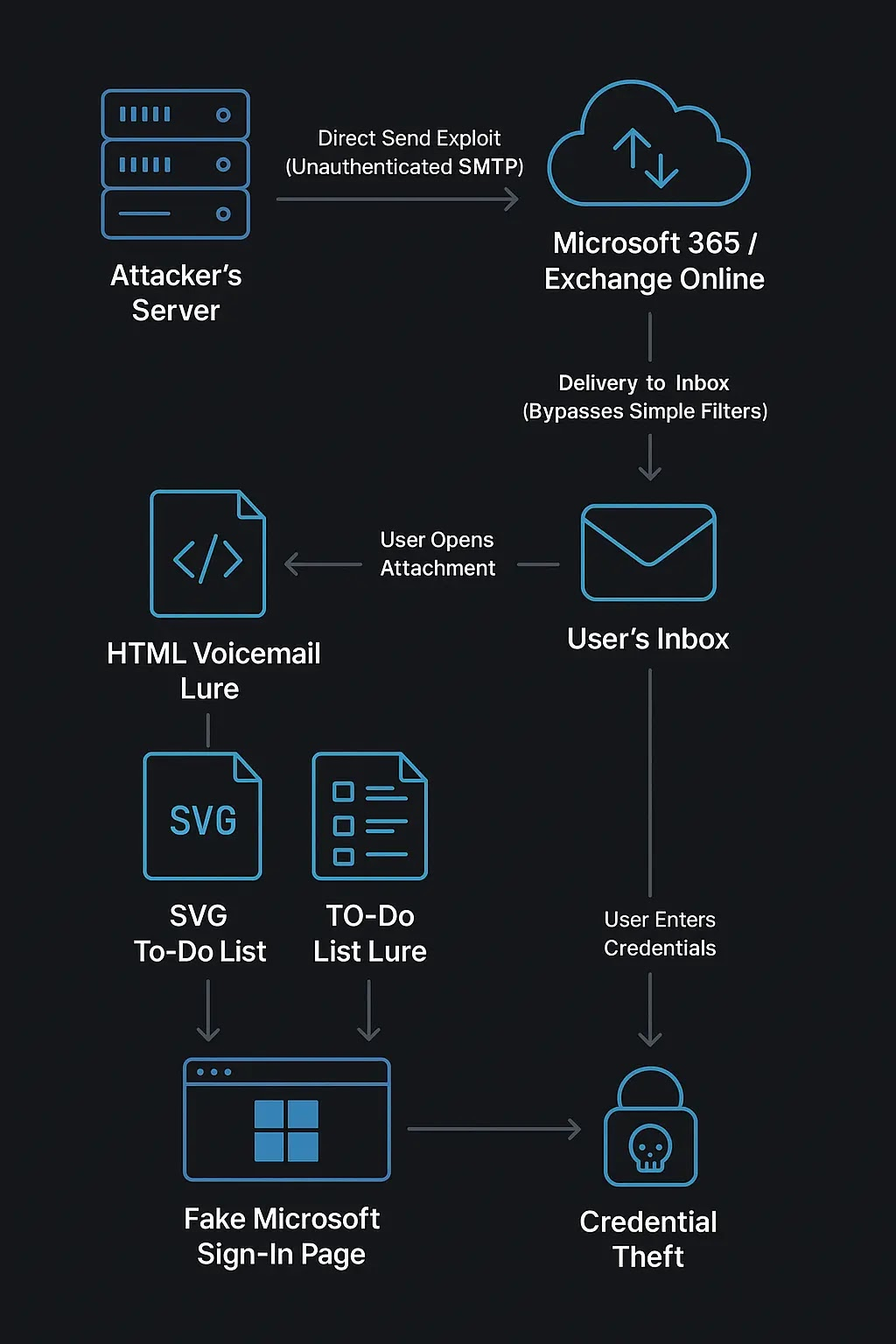 โดยการส่งอีเมลที่เป็นอันตรายผ่านโครงสร้างพื้นฐาน Smart Host ของเหยื่อเอง ผู้โจมตีสามารถปลอมแปลงการสื่อสารของตนให้ดูเหมือนเป็น traffic ภายในองค์กรที่น่าเชื่อถือได้ แม้ว่าอีเมลเหล่านั้นจะไม่ผ่านโปรโตคอลการยืนยันตัวตนพื้นฐานก็ตาม