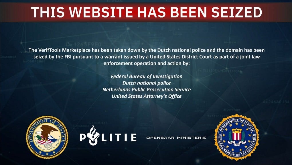 FBI และตำรวจเนเธอร์แลนด์ได้ร่วมกันปิดตลาด VerifTools ซึ่งใช้สำหรับจำหน่ายเอกสารแสดงตัวตนปลอม หลังจากที่สามารถยึดเซิร์ฟเวอร์ในกรุงอัมสเตอร์ดัมซึ่งเป็นที่ตั้งของปฏิบัติการออนไลน์ดังกล่าวได้สำเร็จ