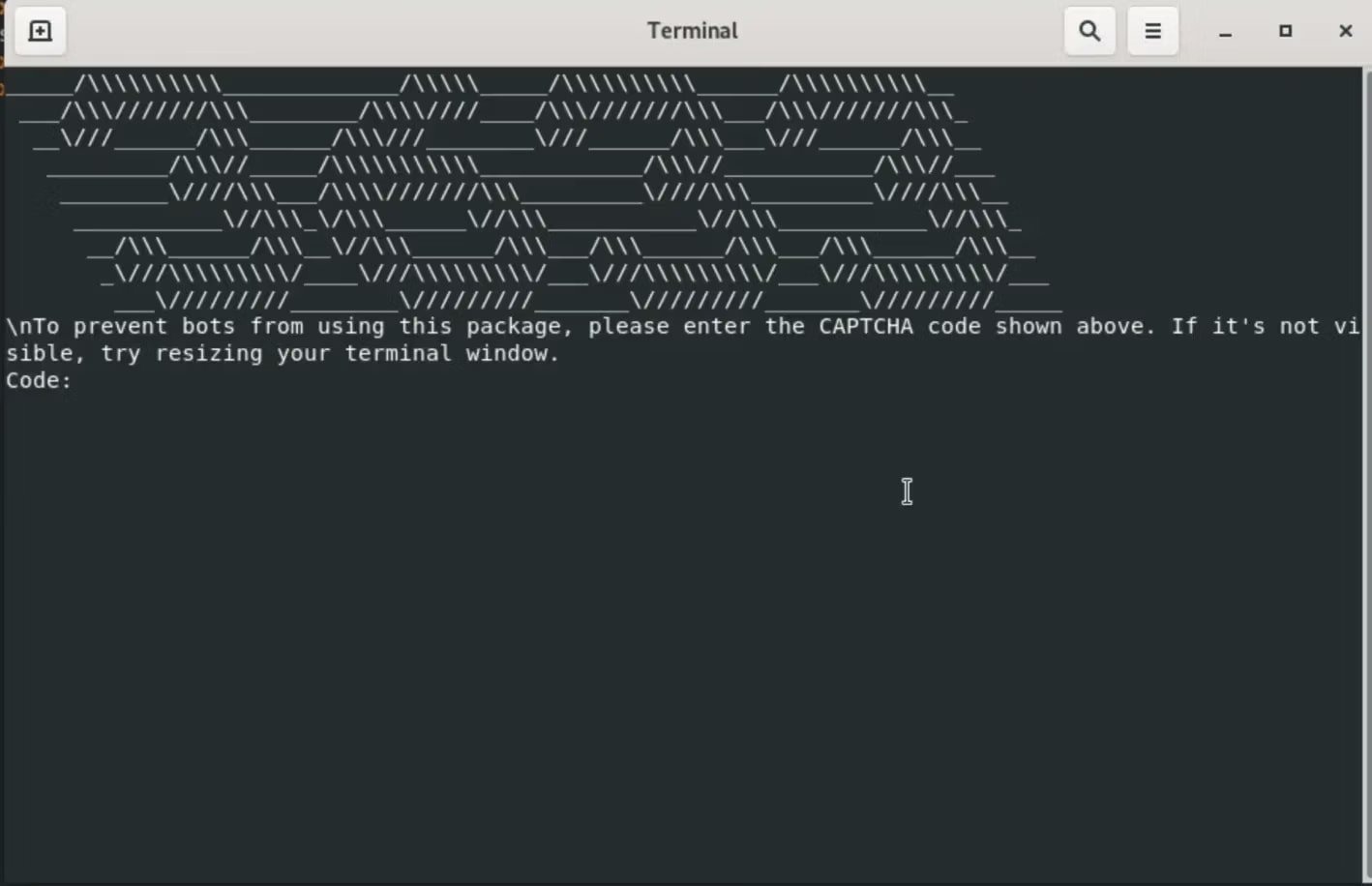 จากนั้น สคริปต์จะแสดงหน้า CAPTCHA ปลอมใน terminal โดยใช้ ASCII เพื่อสร้างความน่าเชื่อถือให้กับกระบวนการติดตั้ง