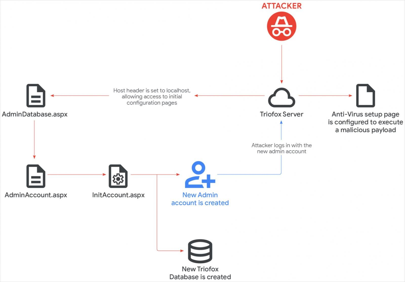 การกระทำดังกล่าวทำให้ผู้โจมตีสามารถเข้าถึงหน้าการตั้งค่า AdminDatabase.aspx ซึ่งเป็นหน้าที่ใช้สำหรับตั้งค่า Triofox หลังจากการติดตั้งได้สำเร็จ