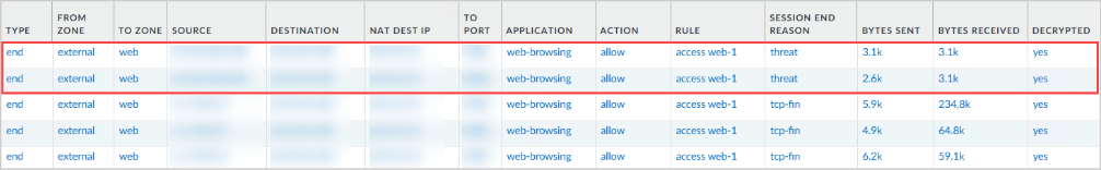 จากนั้นเมื่อตรวจสอบ Log ที่อุปกรณ์ NGFW จะพบว่าเห็นเพียง Traffic การเชื่อมต่อเป็น Application SSL แต่ไม่สามารถตรวจจับพฤติกรรมการโจมตีได้ ซึ่งสาเหตุหลักเกิดจากการที่อุปกรณ์ NGFW ไม่ได้มีการกำหนดค่า Decrypt SSL ของเว็บไซต์ไว้ ทำให้อุปกรณ์ไม่สามารถตรวจจับการโจมตีที่อยู่ใน Payload ได้