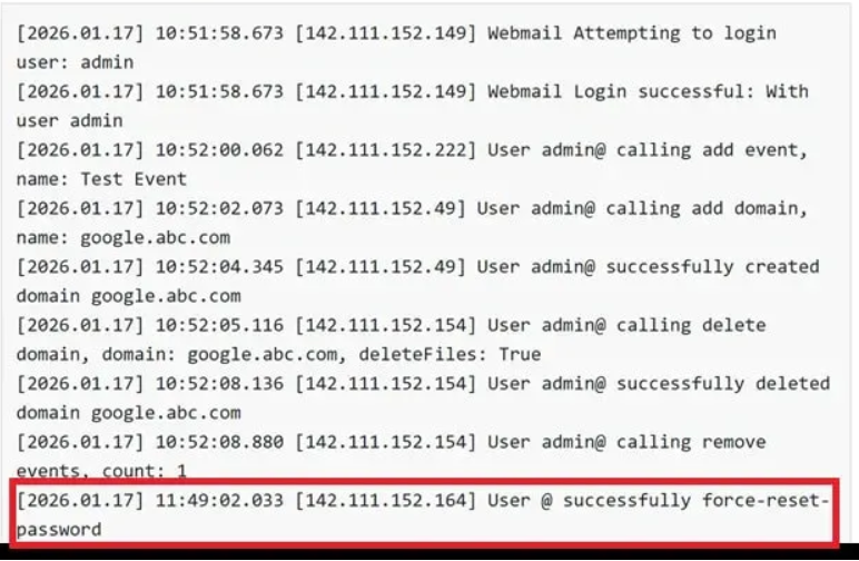 จากการตรวจสอบ Log การใช้งานพบว่าการโจมตีเหล่านี้มุ่งเป้าไปที่ force-reset-password endpoint ซึ่งเป็นหลักฐานข้อสรุปที่ว่าช่องโหว่นี้กำลังถูกกลุ่มผู้โจมตีนำไปใช้โจมตีจริงอยู่ในขณะนี้