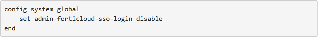 อย่างไรก็ตาม Fortinet เตือนว่าช่องโหว่นี้อาจถูกนำไปใช้ร่วมกับการติดตั้ง SAML SSO รูปแบบอื่นได้เช่นกัน ดังนั้นผู้ดูแลระบบอาจพิจารณาปิดการใช้งานฟีเจอร์ SSO ชั่วคราว โดยใช้คำสั่งต่อไปนี้:
