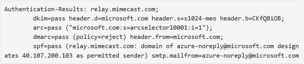 เนื่องจากอีเมลเหล่านี้ถูกส่งผ่านระบบอีเมลที่มีความน่าเชื่อถือของ Microsoft จึงทำให้สามารถผ่านการตรวจสอบด้านความปลอดภัยของอีเมล ทั้ง SPF, DKIM และ DMARC ได้สำเร็จ ส่งผลให้ข้อความหลอกลวงเหล่านี้ดูมีความน่าเชื่อถือมากขึ้น