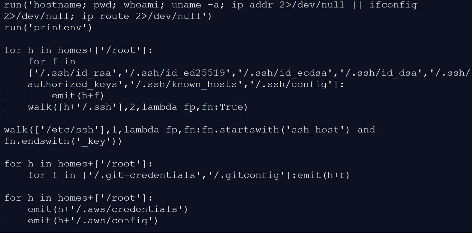 - รวบรวมข้อมูล Cresentials (SSH keys, cloud tokens, Kubernetes secrets, crypto wallets, และ .env files)