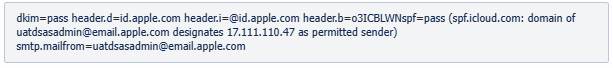 จากการวิเคราะห์ Email Headers เพิ่มเติม พบว่าข้อความดังกล่าวมีต้นทางมาจากโครงสร้างพื้นฐานระบบเมลของ Apple และไม่ใช่ Spoofing แต่อย่างใด