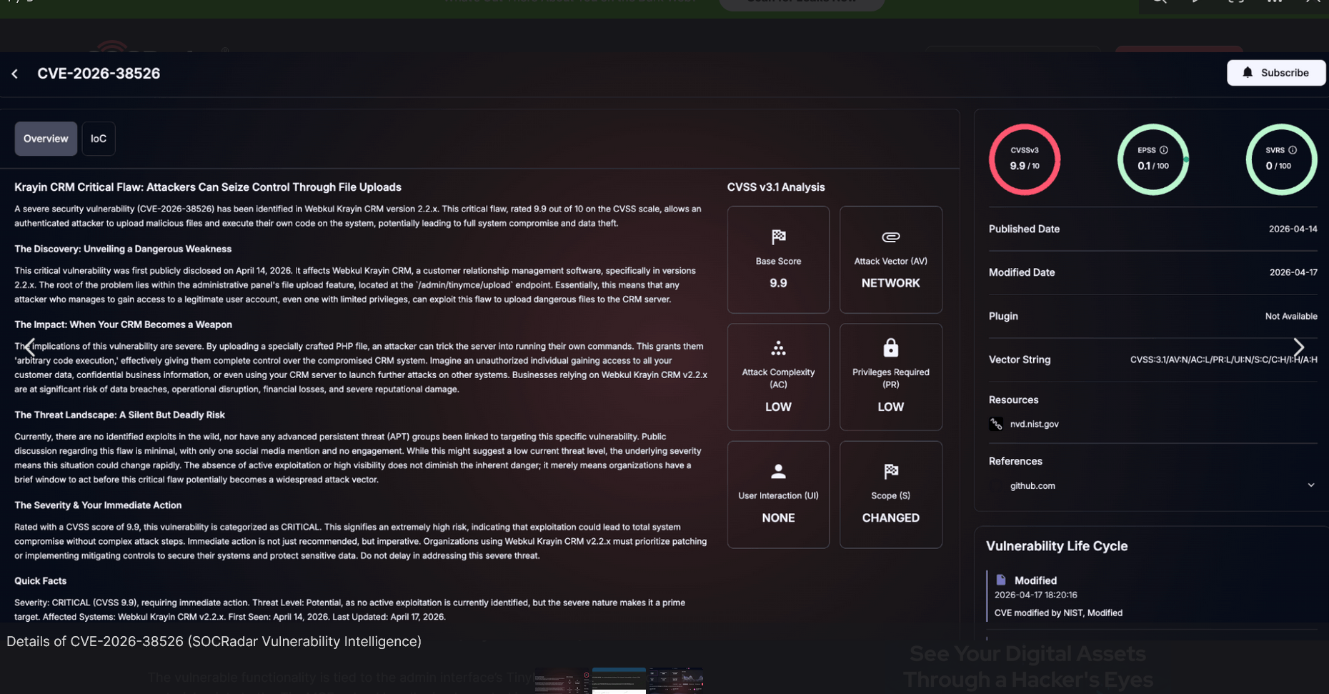 ผลิตภัณฑ์ที่ได้รับผลกระทบคือ Webkul Krayin CRM (krayin/laravel-crm) เวอร์ชัน 2.2.x