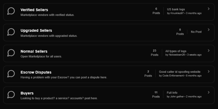 Marketplace ถูกออกแบบมาเพื่อจัดหาทรัพยากรทุกอย่างที่จำเป็นต่อการปฏิบัติงานของบอท ไม่ว่าจะเป็นข้อมูลสถาบันการเงิน, บัญชีผู้ใช้งาน ไปจนถึงรายชื่อเป้าหมาย โดยข้อมูลเหล่านี้จะถูกซื้อขายผ่านระบบผู้ขายที่แบ่งระดับความน่าเชื่อถือ โดยกลุ่ม "Verified Sellers" คือผู้ขายที่ผ่านการตรวจสอบ และยืนยันตัวตนแล้ว ในขณะที่กลุ่ม "Normal Sellers" จะเปิดให้บุคคลทั่วไปสามารถเข้ามาลงประกาศขายได้ นอกจากนี้ยังมีระบบคนกลางสำหรับระงับข้อพิพาท โดยผู้ซื้อสามารถระบุความต้องการเฉพาะ ส่วนผู้ขายก็สามารถสร้างชื่อเสียง และความน่าเชื่อถือภายในระบบได้เช่นเดียวกัน
