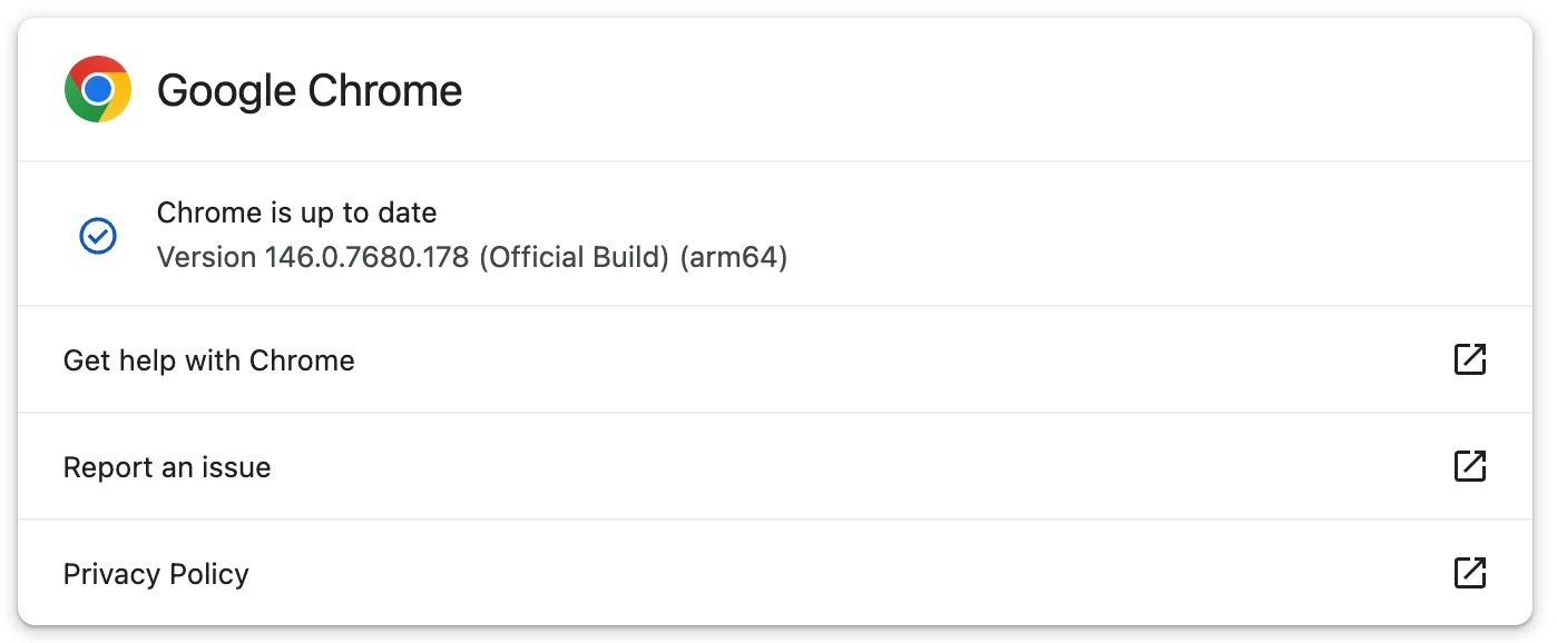 ขณะนี้ Google ได้ดำเนินการแก้ไขช่องโหว่ Zero-day ให้กับผู้ใช้งานในเวอร์ชัน Stable Desktop เรียบร้อยแล้ว โดยกำลังทยอยอัปเดตเวอร์ชันใหม่ให้กับผู้ใช้ Windows, macOS (146.0.7680.177/178) และ Linux (146.0.7680.177) แม้ว่า Google จะระบุว่า การอัปเดตฉุกเฉินครั้งนี้อาจต้องใช้เวลาหลายวัน หรือหลายสัปดาห์กว่าจะครอบคลุมผู้ใช้ทั้งหมด แต่จากการตรวจสอบของ BleepingComputer ในวันนี้พบว่าสามารถกดอัปเดตได้ในทันที